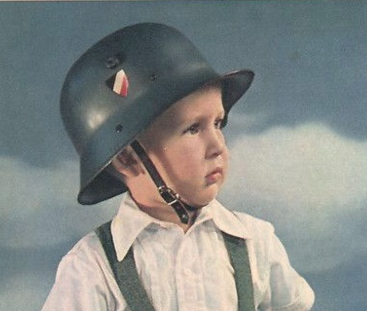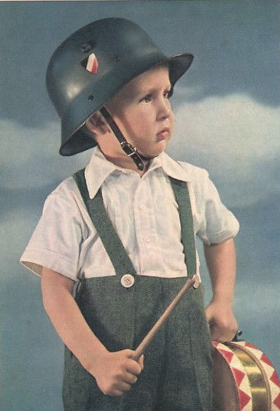 Ein Musiker, Nice kiddie helmet, seems to me all these kiddie helmets then would be a light weight metal right, just like the doughboy helmets here in America then, plastic ones not coming out till the 50s-even 60s. Photo taken of course sometime in the 30s