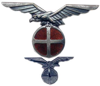 Brig Posted November 26, 2018 Author #5 Posted November 26, 2018 Here is an example of a (Fake) GSSN cap eagle...not to be confused with political party emblems which were silver but had straight/flat tops to the wings, much like German. The tell-tale giveaway of these being fake is the enamel...the Norwegians never used enamel in their cap badges, either they painted the background of left them the color of the rest of the emblem. Additionally, Norwegian badges always had thin round prongs that were notorious for falling off over the years, flat prongs are signs of reproduction. Additionally, fakes are being made with the British style loops for cotter pins...a reproduction GSSN like above with cotter loops recently sold on auction for $300! It's interesting to note that the GSSN was not a strictly German organization...but fell under Quisling's government, although it was greatly opposed by Quisling himself and he urged good party members not to join. It never got very large, sporting only 1247 members in September 1944