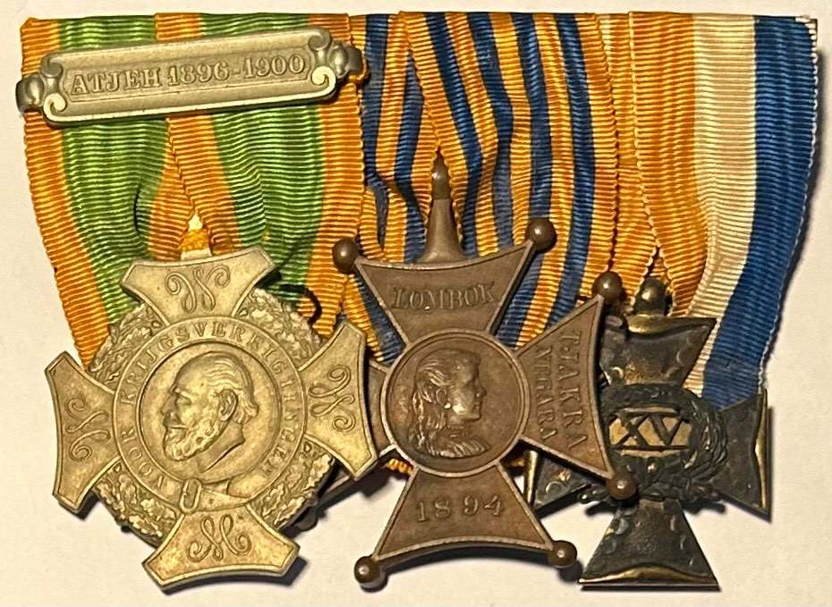 Hermann Posted September 15, 2025 Author #67 Posted September 15, 2025 A Dutch KNIL officer who fought at Lombok in 1894. The center Medal is the Lombok Cross, Made of bronze of captured enemy canons.