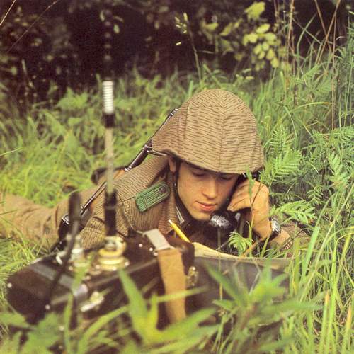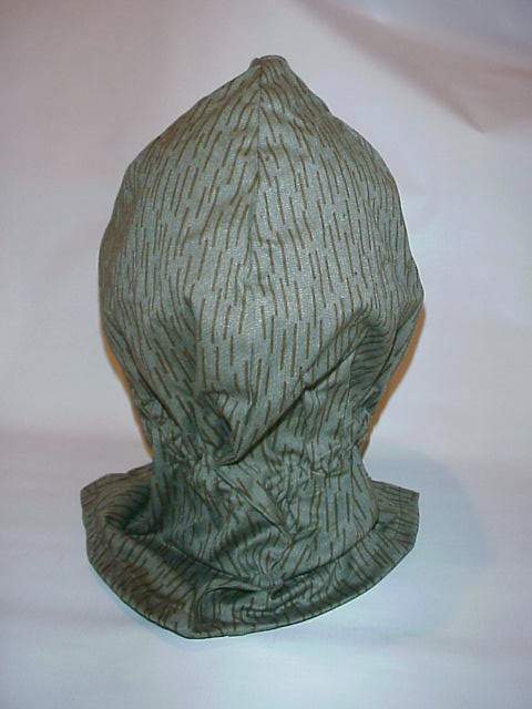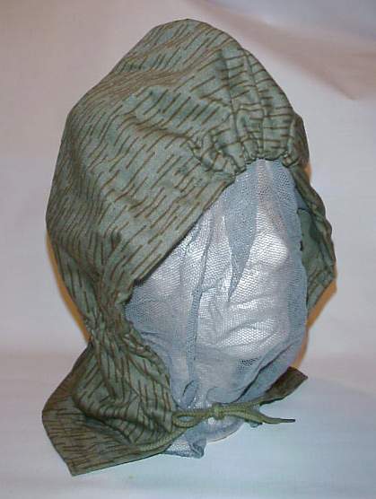 SARGE Posted January 2, 2019 #1 Posted January 2, 2019 This is the rain pattern (Strichtarn) pattern of camouflage steel helmet cover and hood. When folded up it is attached, as a cover, to the M56 steel helmet with the drawstring securing it over the top of the helmet. It can then have the net face shield pulled down by unbuttoning it from the cover and letting it fall over the face. The cover can also be removed completely from the helmet and it can be worn as a hood utilizing the drawstring to tighten it about the face and neck. A very versatile piece of camouflage equipment.