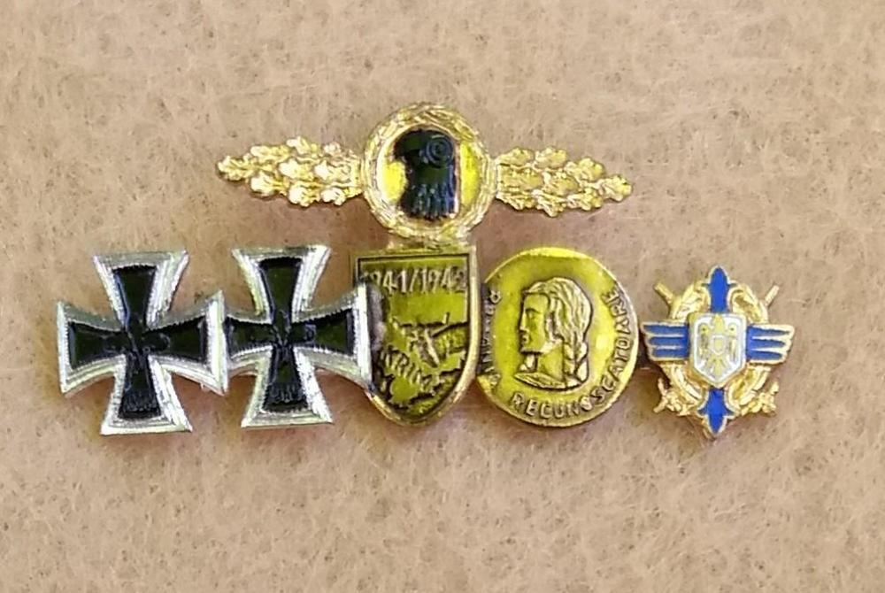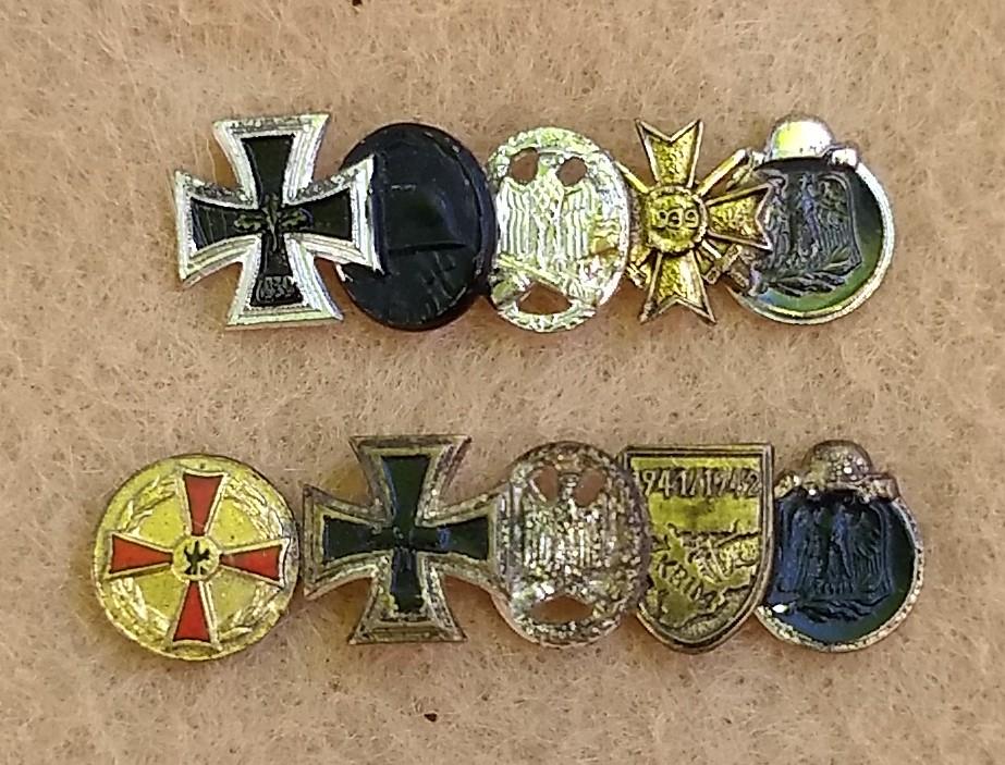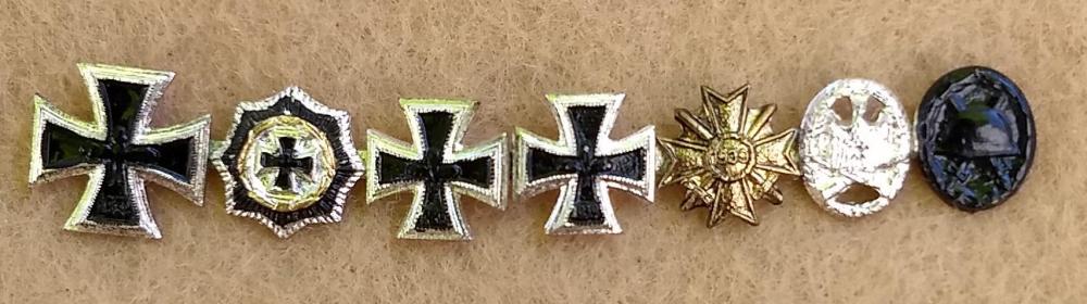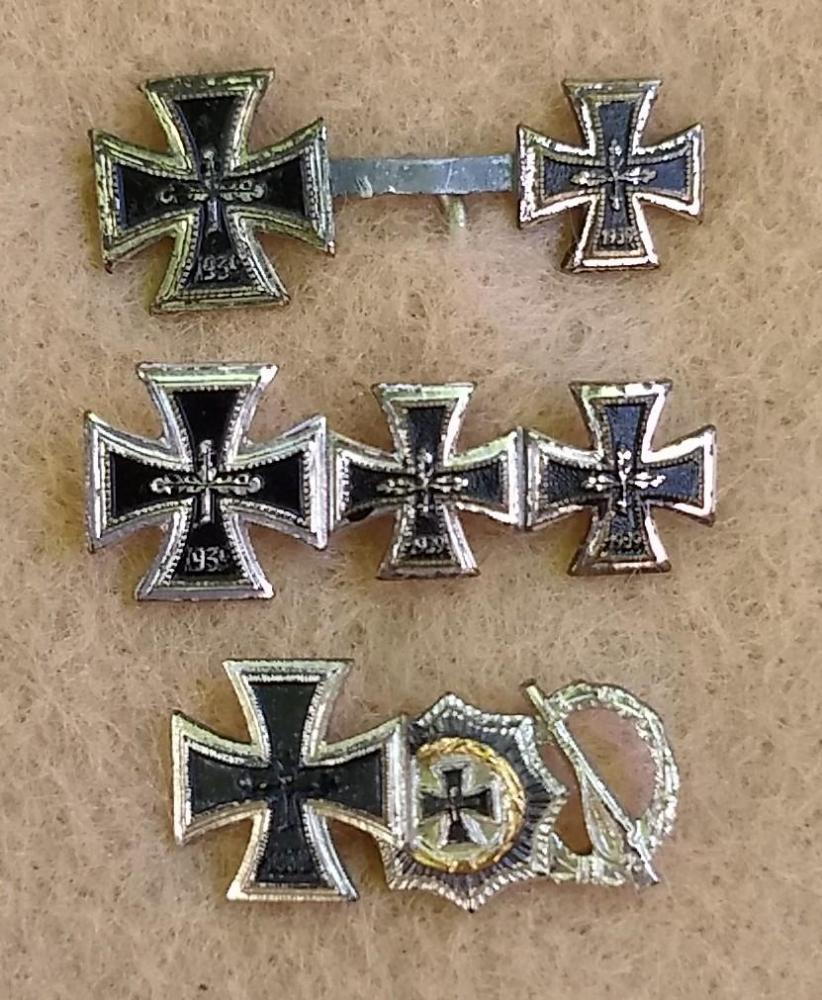 Brig Posted January 10, 2019 #1 Posted January 10, 2019 One of the nice things about 57ers is you can find reasonably affordable Knight's Cross miniatures...or as I call the large combos, "careers on a stick". During WWII, stickpins were limited by regulations to 3 awards or less. There was no such limit under the 57er regulations, and it was not uncommon for the veteran to wear his entire complement of awards on a stick. I am a rather avid 57er miniature collector, however 57ers are not that popular in the US, and even tougher to find as they didn't make their way over here as veteran trophies. Most of these I have acquired from overseas, and occasionally from a US collector who acquired them the same way.