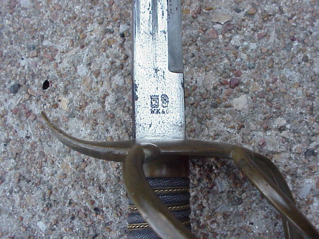 SARGE Posted November 24, 2019 #1 Posted November 24, 2019 Gents, I picked up a fairly scarce Imperial Bavarian Curiassier sword at a militaria show this weekend that I thought I would show. It is made with a straight blade with two narrow fullers like the Prussian Infantry Officer Degen (IOD) but this nickeled blade is etched with the Bavarian motto, "in Treue Fest". The sword is made by WK&C and is shown in their period catalog as a Curiassier Sword. The black painted straight steel scabbard has only one fixed suspension ring indicating manufacture after circa 1910 when the second ring was ordered removed. The brass hilt has a brass wire wrapped sharkskin grip with no cypher and a three branch guard as shown in the WK&C catalogs.