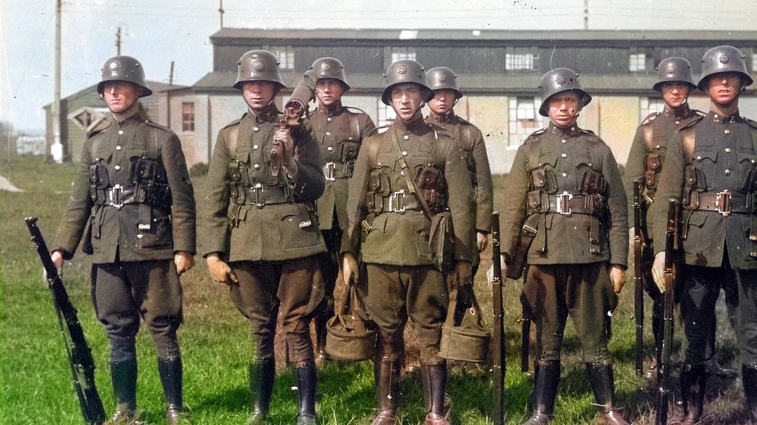 patches Posted June 22, 2024 #79 Posted June 22, 2024 These troops are from the 12th Infantry Regiment, a post 33 photo, where the red white and black cockade is now worn inside the wreath on cap instead of the oval eagle badge, decal will be the new tricolor shield. The top one should be an Anhalt one.