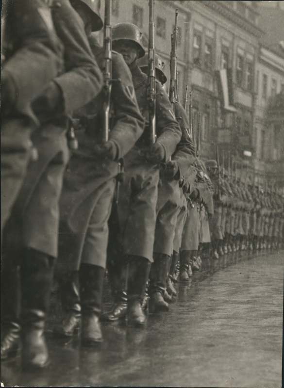 patches Posted February 2 #95 Posted February 2 Here's a find, the applying of the new NSDAP Eagle Decals and no doubt the new Tricolor Shield on the other side at the unit level, this being after April 1934, the date the new insignia is adopted and then is issued out. Unit here is the Prussian 7th Infantry Regiment, the troops are still wearing though the Weimar insignia caps with no breast eagle, the new ones come out after May 1934 for wear as per the Decree of February 17, 1934,which was effective from May 1, 1934.