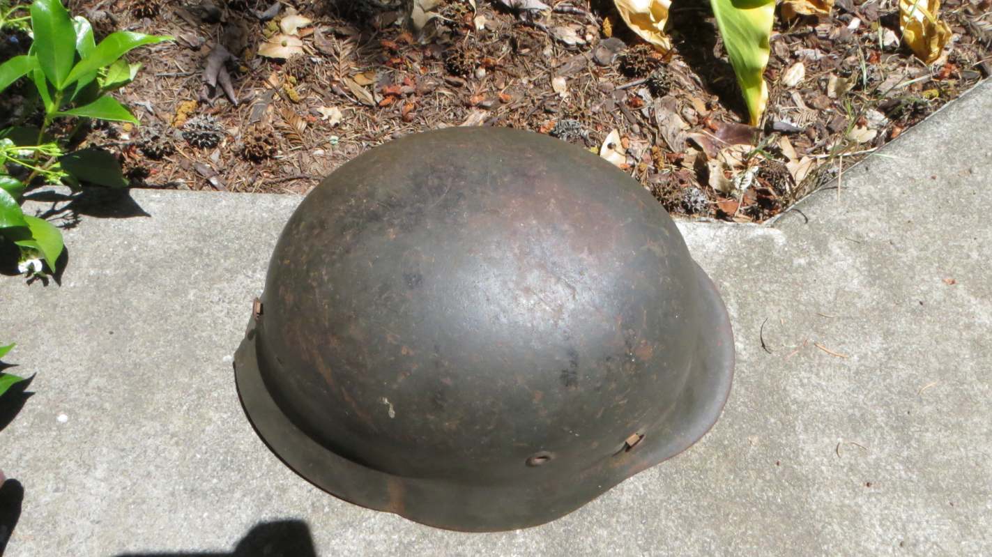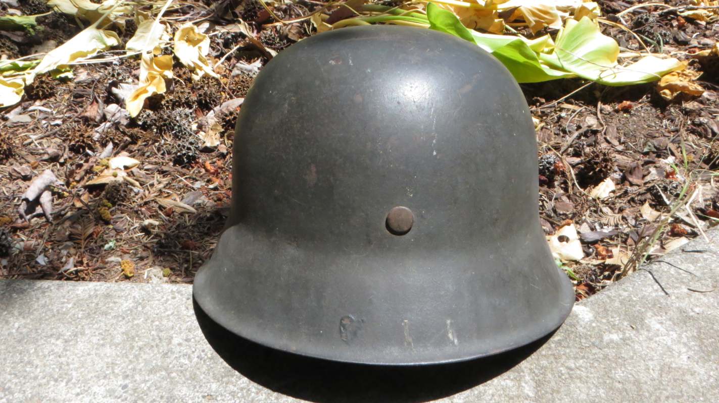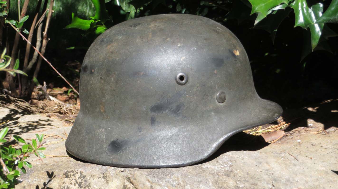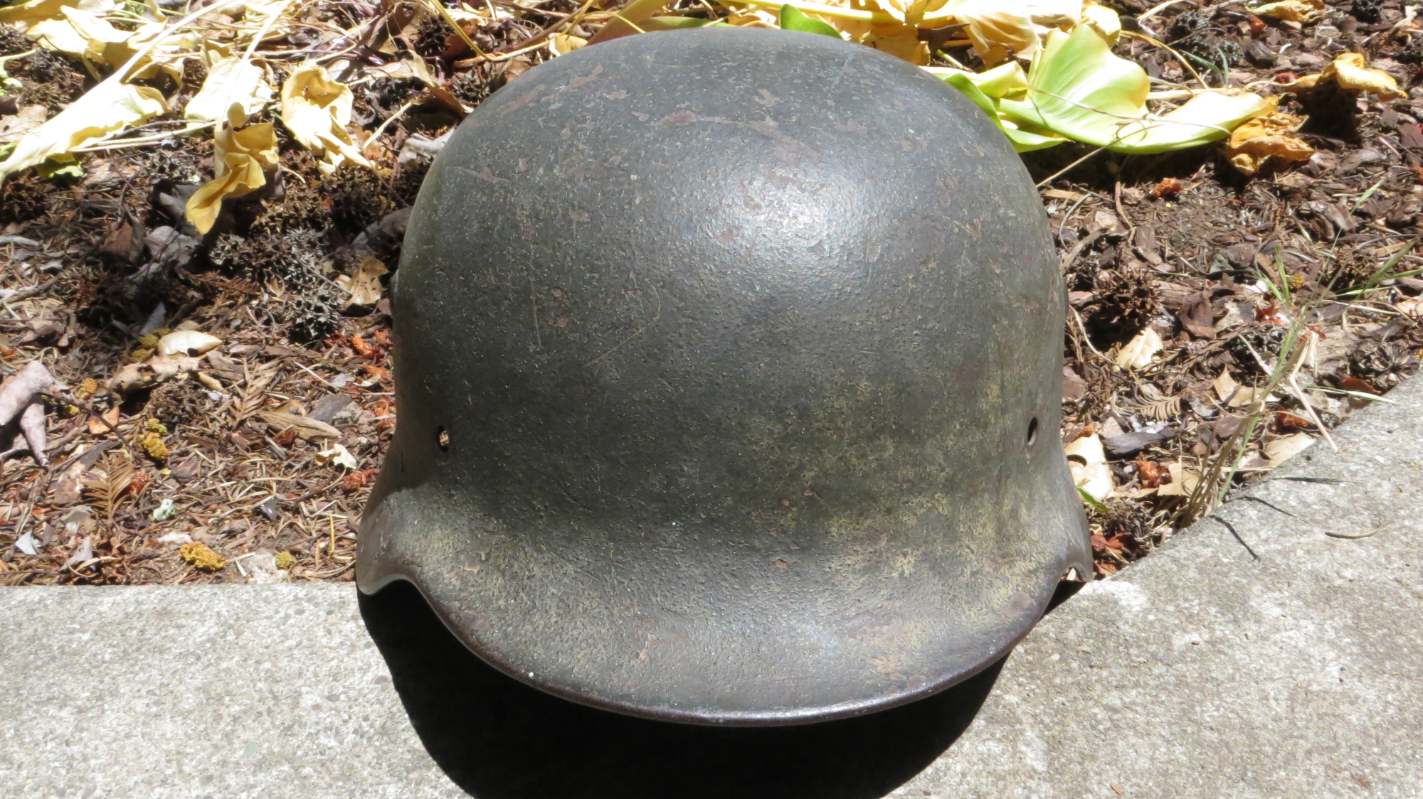 Airborne-Hunter Posted May 20, 2021 Author #6 Posted May 20, 2021 Today's post is a German M40 shell. It came out of a local flea market in Fall 2017 or so. It wasn't exactly cheap for a shell at the time, but it was early in the morning and the lighting was not the best. When I got it home I noticed that it was actually a camouflaged piece. The army decal has been covered up and the overall finish is a very dark green or black with mixes of browns. I am unsure what would require such a color scheme, it is certainly not as vibrant as a lot of Normandy style camos I have seen. but it is a nice piece none the less. If only it had the rivets and the liner... ABN