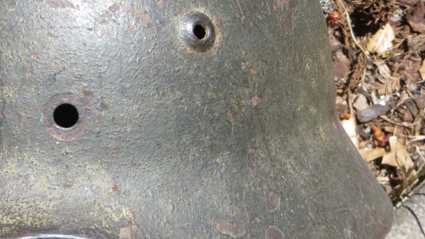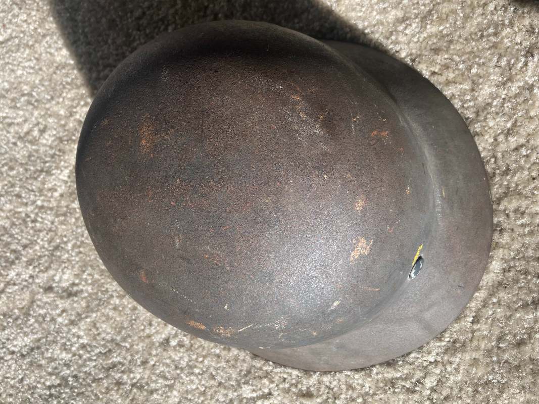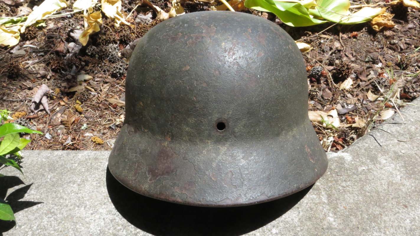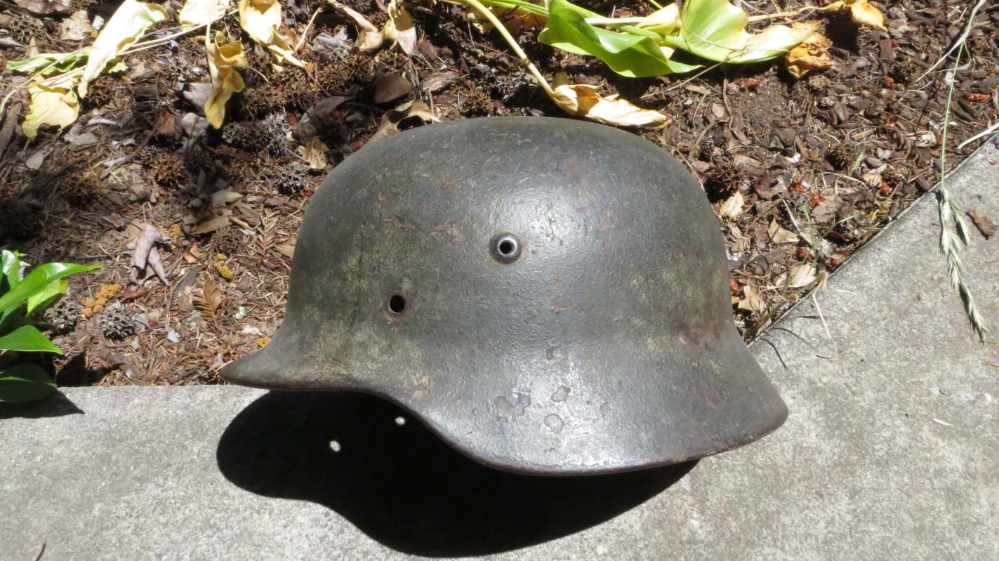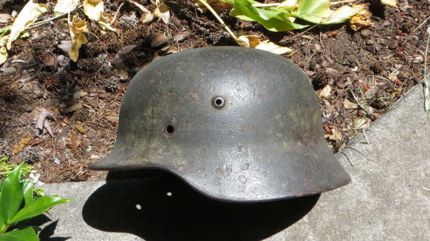 Airborne-Hunter Posted May 20, 2021 Author #6 Posted May 20, 2021 Today's post is a German M40 shell. It came out of a local flea market in Fall 2017 or so. It wasn't exactly cheap for a shell at the time, but it was early in the morning and the lighting was not the best. When I got it home I noticed that it was actually a camouflaged piece. The army decal has been covered up and the overall finish is a very dark green or black with mixes of browns. I am unsure what would require such a color scheme, it is certainly not as vibrant as a lot of Normandy style camos I have seen. but it is a nice piece none the less. If only it had the rivets and the liner... ABN