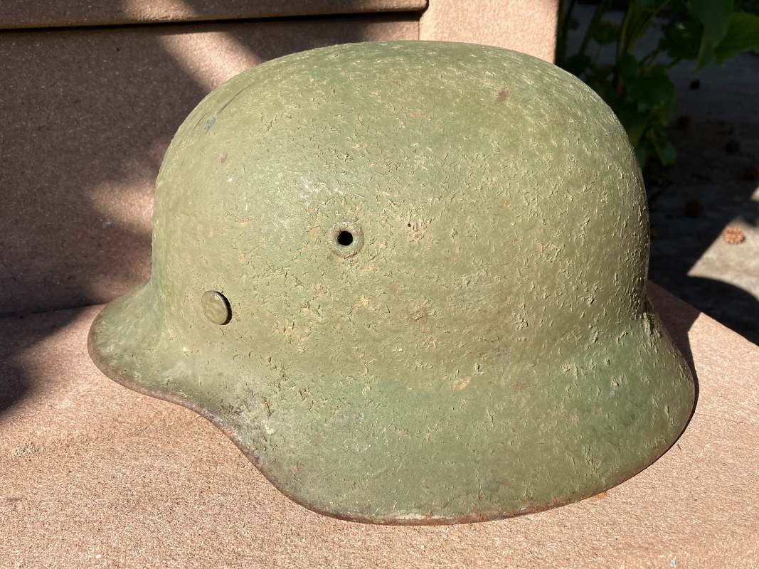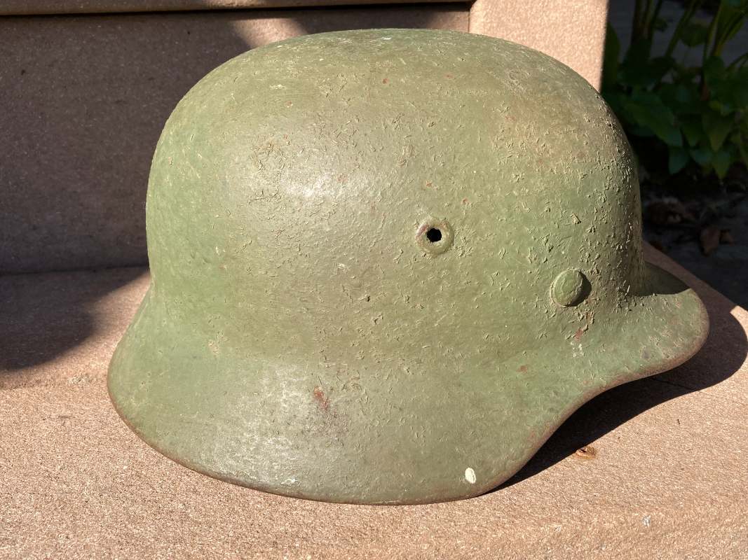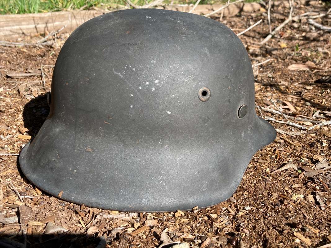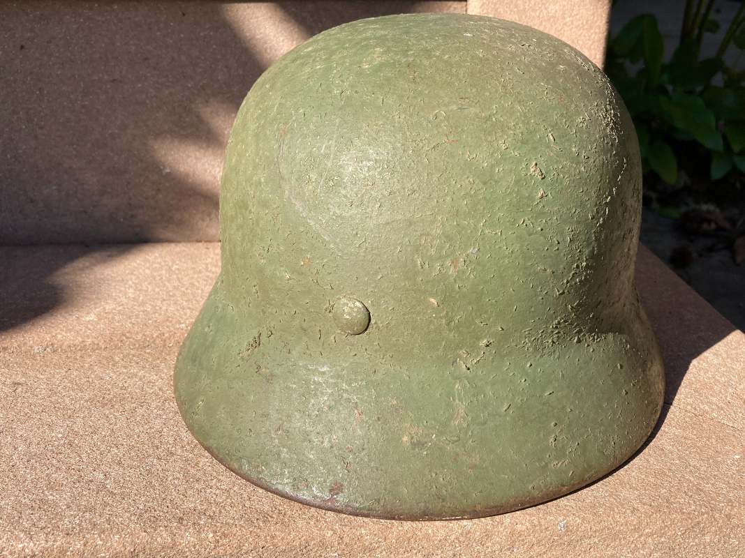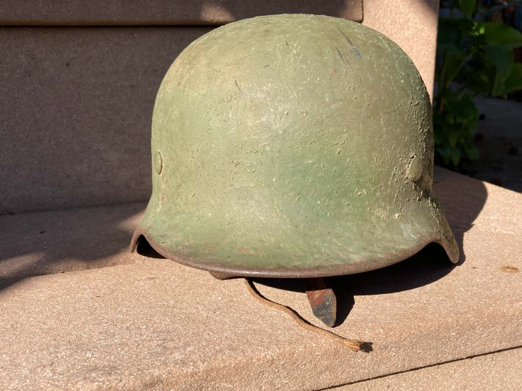 Airborne-Hunter Posted May 19, 2021 Author #5 Posted May 19, 2021 That last helmet came out of the woodwork in September 2020. This next helmet came out of an estate sale somewhere South of San Francisco. It was brought back by an army Nurse. A friend of a friend bought it and then didn't want it and told our mutual friend about it. In short it wound up with me in June 2019. Unfortunately, I was unable to get any other history on it, but its a nice later war reissue army. I have heard stories of Germany taking WW1 helmets out of veteran halls and refurbishing them late in the war. I presume this is one of those.