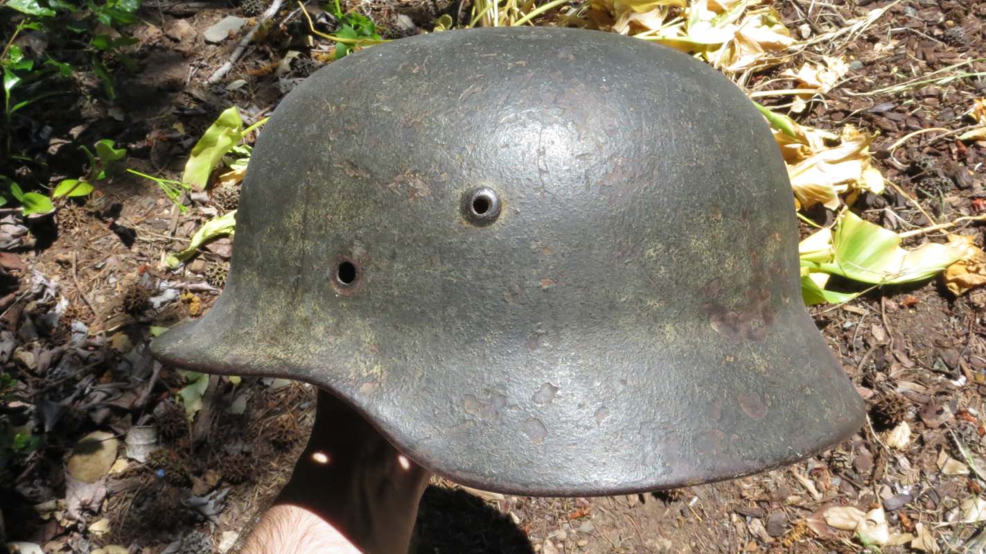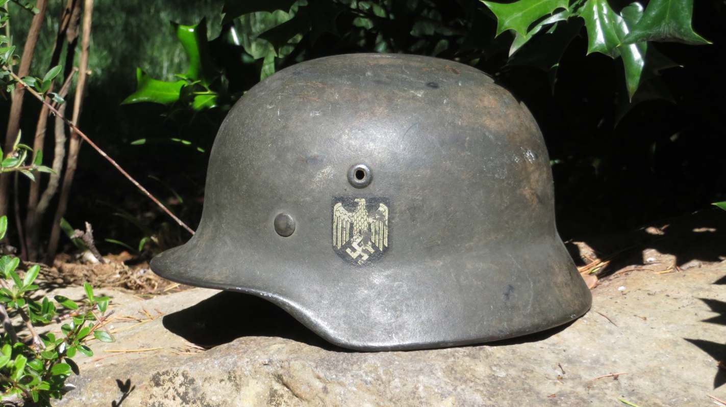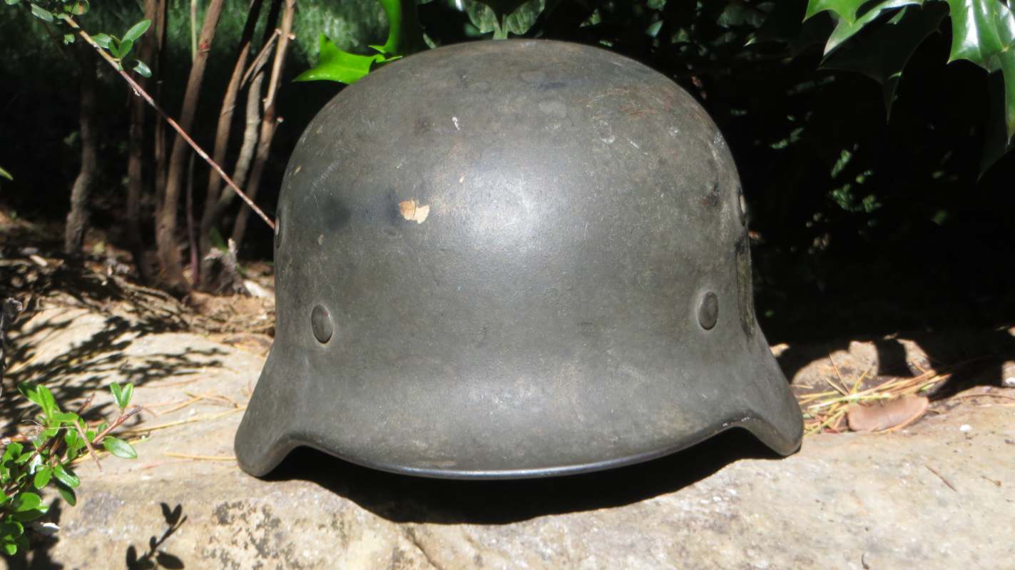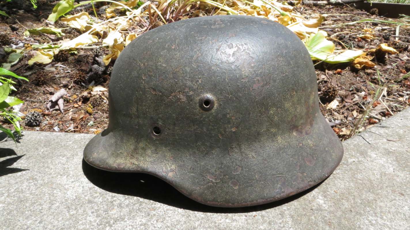 Airborne-Hunter Posted May 19, 2021 Author #5 Posted May 19, 2021 That last helmet came out of the woodwork in September 2020. This next helmet came out of an estate sale somewhere South of San Francisco. It was brought back by an army Nurse. A friend of a friend bought it and then didn't want it and told our mutual friend about it. In short it wound up with me in June 2019. Unfortunately, I was unable to get any other history on it, but its a nice later war reissue army. I have heard stories of Germany taking WW1 helmets out of veteran halls and refurbishing them late in the war. I presume this is one of those.