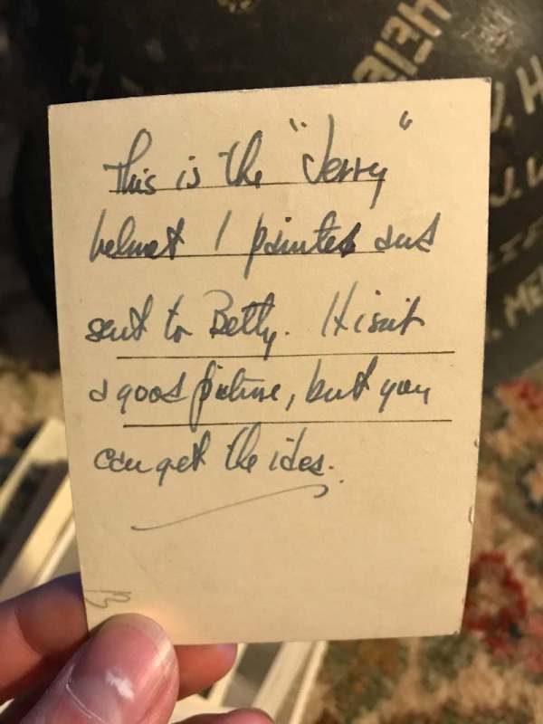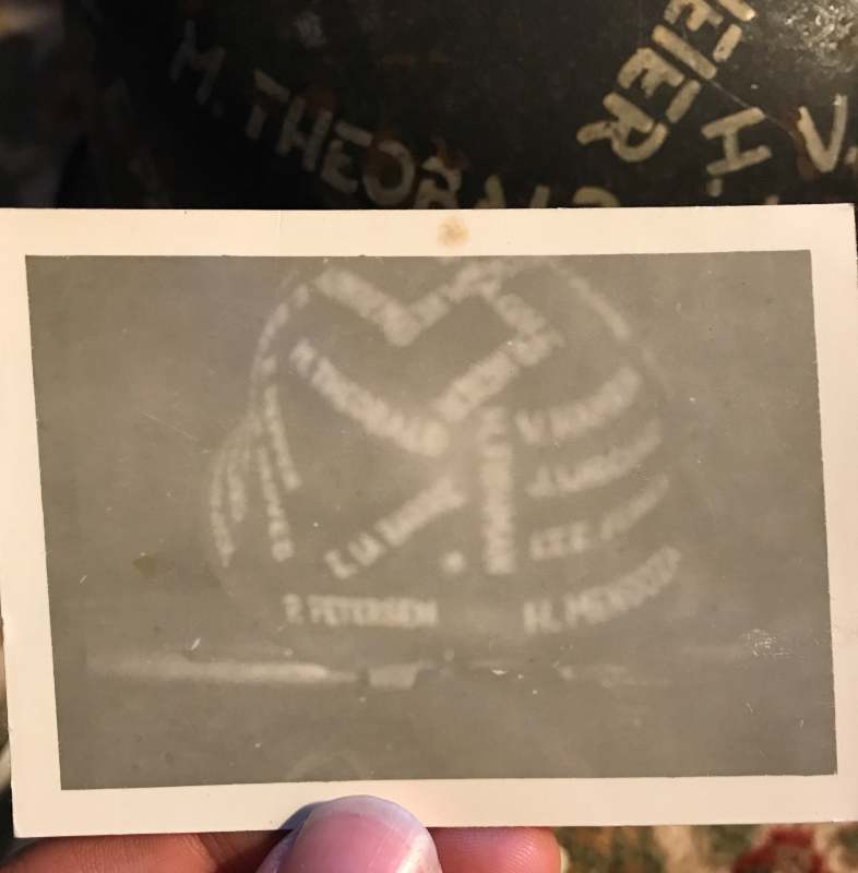 Airborne-Hunter Posted November 19, 2021 Author #14 Posted November 19, 2021 On 5/25/2021 at 11:26 PM, Airborne-Hunter said: I picked this one up at an estate sale in October 2017. Its a standard M42 single decal luf, but it has the names of a bunch of Americans nicely painted on the outside. Unfortunately, since the last fire, I've temporarily misplaced the photo album that goes with it that included at least one photo of this very helmet in hand during the war. In any case, it'll turn up at some point. Best ABN It's been a few months and I've neglected this topic. There's definitely more to post, but thats for another day. In the interim, I was able to locate the photograph of this helmet as well as the rest of the photos from this man. The back of the picture reads: "This is the "Jerry" helmet I painted and gave to Betty. It isn't a good picture, but you can get the idea." Best ABN