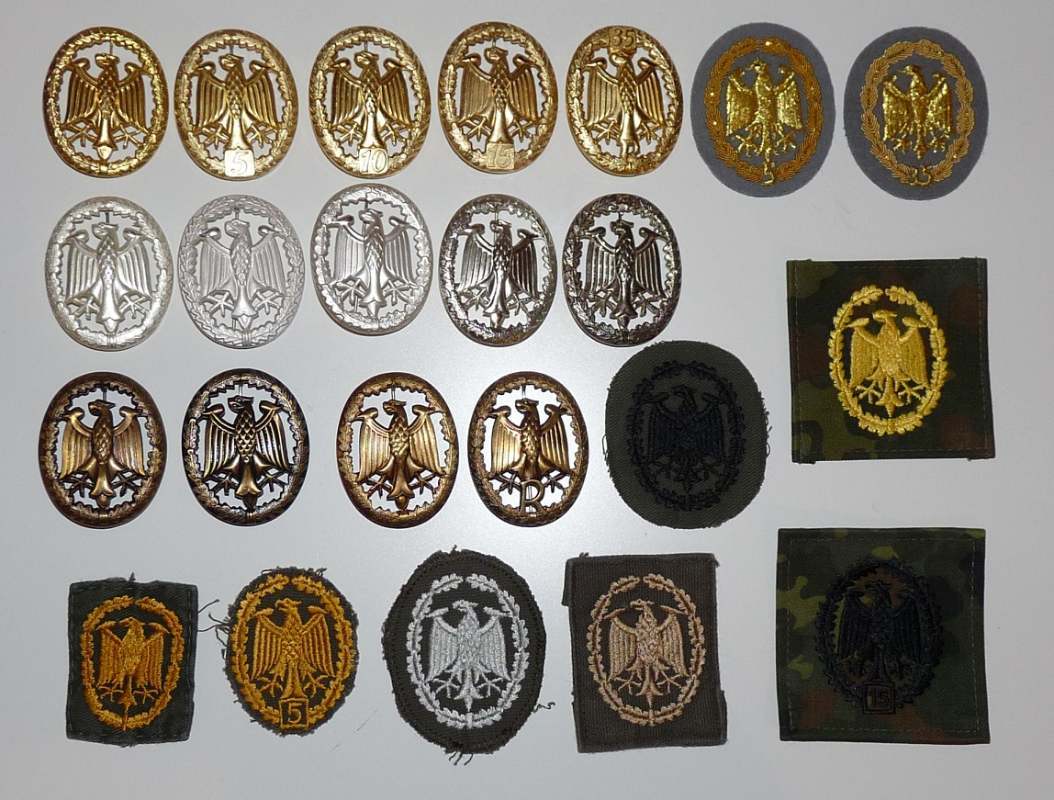 Proud Kraut Posted August 5, 2021 #2 Posted August 5, 2021 Sarge, thanks for starting a "Leistungsabzeichen" topic! The so called "Butterorden" can be achieved/awarded each year so golden variations with numbers from 5 to 35 or 40 do exist. Proficiency badges with the letter "R" are for reserve personnel. If you don´t mind, I´m adding some more variants here. And if you still need a silver and golden one please PM me your address; I`ll send you a set.