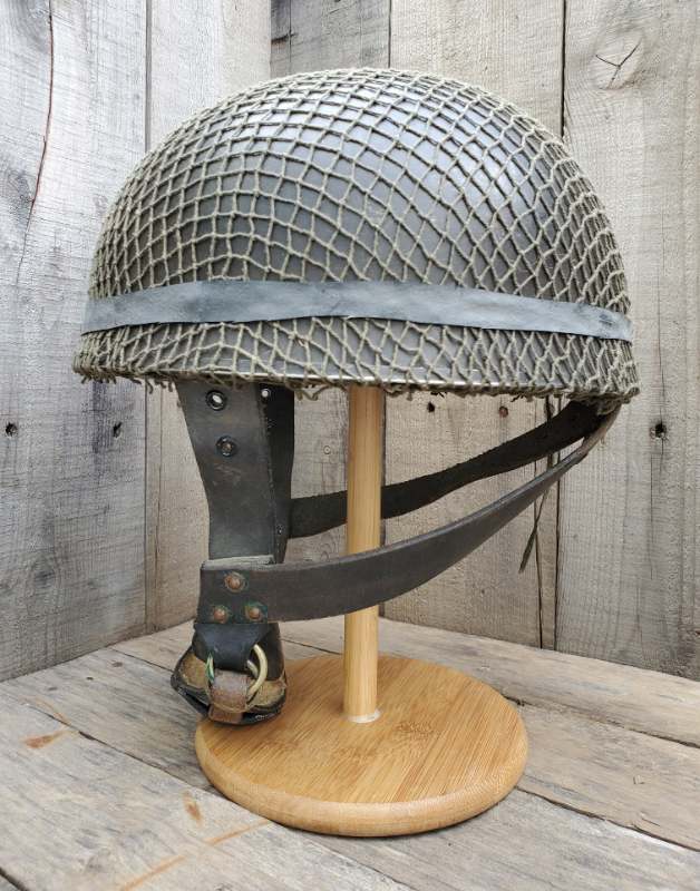 Mark K Posted November 13, 2021 #1 Posted November 13, 2021 What we have here is a rather nice post war conversion of a Canadian HSDR to an HSAT there is very little published information out there concerning this type of conversion and most of that can be found is in the book Tin Lids.... What we do know is in the late 1940's and early 1950's Canada began to rebuild her Airborne ready forces and a new Rapid Response Mobile strike force which was formed to operate anywhere in Canada including the vast arctic territories to counter any perceived Soviet aerial threat.. They had enough AB helmets for the PPCLI but the RCR and R22R did not have enough helmets and as there was an extreme shortage and as two other army groups had to be outfitted and made airborne ready the decision was made to convert existing Mk I DR helmets that were in military stores to meet the expanding need... The HSDR's were turned 180 degrees so that the brow pad became a neck support the skirting was then cut off and some times dome crash pads were added and the shells were drilled out to accommodate new leather harnesses in the Mk I configuration... The requirement had been for 500 of these converted AB helmets to be converted but the exact number is not known... The helmet body was produced by the Canadian Motorlamp Company ( C.L./C.) and bares there stamp in the interior low on the skirt near the rim this example is only one of two that I have ever seen that is still sporting it's original war time number 3 # khaki paint as the majority of them fell under the brush as it were post 1953 and were repainted in either a gloss and or semi gloss OD green the troopers name and service number have been nicely inked on the interior of the helmet body... The liner was produced by Backstay Standards ( BS ) and bares there company logo and date and is nicely marked with C-/I\ Canadian government acceptance stamp on the reverse of the sweatband and in the helmet body, as to the leather chinstrap it is thought that British WW II examples were first used until know more could be procured The harness assembly on this particular helmet is sporting a Canadian post war produced example.. Regards Mark