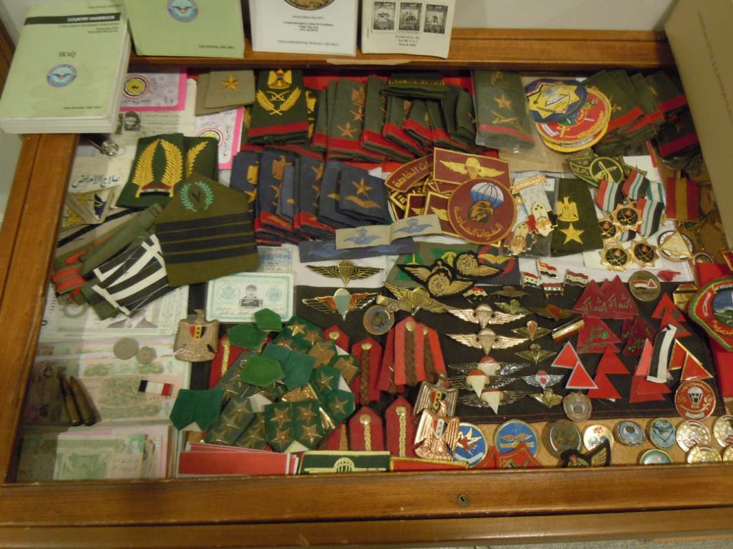 ScottG Posted January 25, 2022 #1 Posted January 25, 2022 For several years I was a moderator and later the admin on an Iraq Militaria Forum. The early days were quite interesting but as time progressed people were less interested in the history or identification of items and more interested in just playing at collecting, screwing each other over and running on about nonsense like the Fedayeen being similar to the SS etc... So, I let the forum basically run itself and I think its still there, though I never approve new members when I receive notices and I don't do upgrades. I left, I packed up most of my items in the basement and simply returned to other areas of collecting. Recently I have been contacted by several "collectors" asking if I still had anything, and would I sell it. These were basically cold calls out of the blue and quite frankly a bit offensive. When I told one person no, he continued to badger me about it until he finally went away with the statement that I probably sold it all or never really had it at all! I mean, the forum was full of photographic evidence that I did but oh well, why read right??? So, I have been working in my basement lately and decided to clean up one cabinet that has no glass but I always used it to keep some of my Iraq insignia in. It also contains money from the republic (Saddam era) as well as i.d. cards and many other "smalls" so they won't get lost. Also shown are some US books we were issued while in country as well as a box of flags, Qatari insignia, Kuwaiti insignia and Iraqi fouragerre's (qardoons). The plastic box has kingdom era collar insignia sets. The berets represent both Desert Storm era as well as OIF as I was in both. They cover all of the known types from Air Force, Navy, Army, Special Forces, Thunder Troops, Logisitics, Military Police, and of course Republican Guard. The plastic bag contains a Republican Guard beret with General Staff insignia from the home of the "Ace of Diamonds". Nearly all of these items were sent home or brought home by me. One truth to the rude "collector" is that I did sell a ton, I sold nearly everything that I purchased while in Iraq, or that I traded for or bought when I came home. Hope you like the photos. Scott.