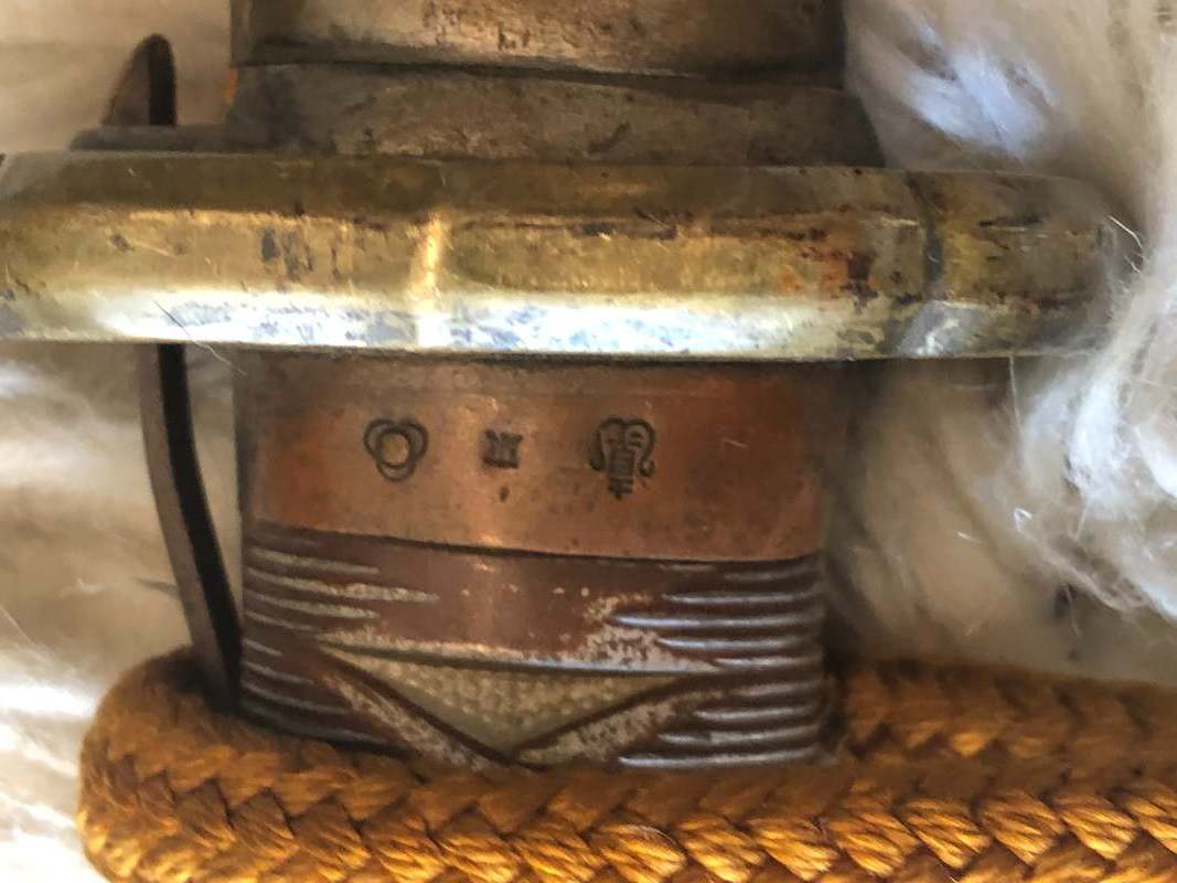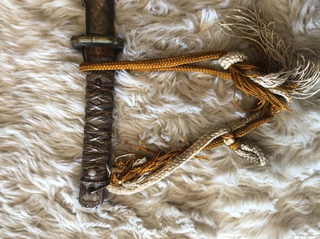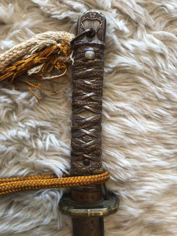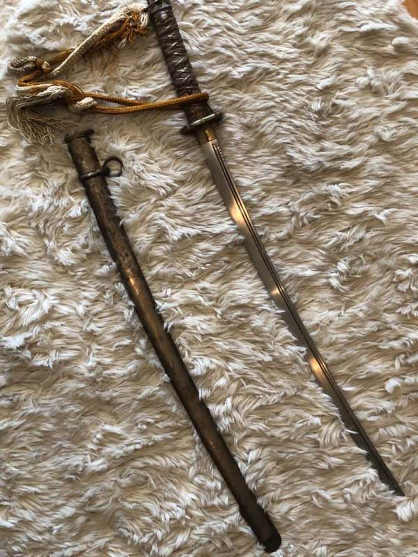 Strawberry 9 Posted February 17, 2023 #1 Posted February 17, 2023 I am a WWII collector but this is my first sword. I'm going to be doing some research, but I thought I would reach out to more knowledgeable members here. This sword does have a aluminum grip which if I am correct makes it a NCO sword. The numbers do not match on the blade and the sheath. I'm really curious if the colors of the braiding mean something specific. The person I bought this from has had it for 40yrs. He bought it at a neighborhood garage sale when he was 12yrs old here in Chicago. He remembered that the gentleman he bought it from was a Marine, but couldn't remember his name unfortunately. Evidently, the Marine had stripped the sheath of its paint with the intention of repainting it. He never did. A friend of my wife's can read Japanese so I'm going to ask him to look at the markings. I'm excited to learn more about it.