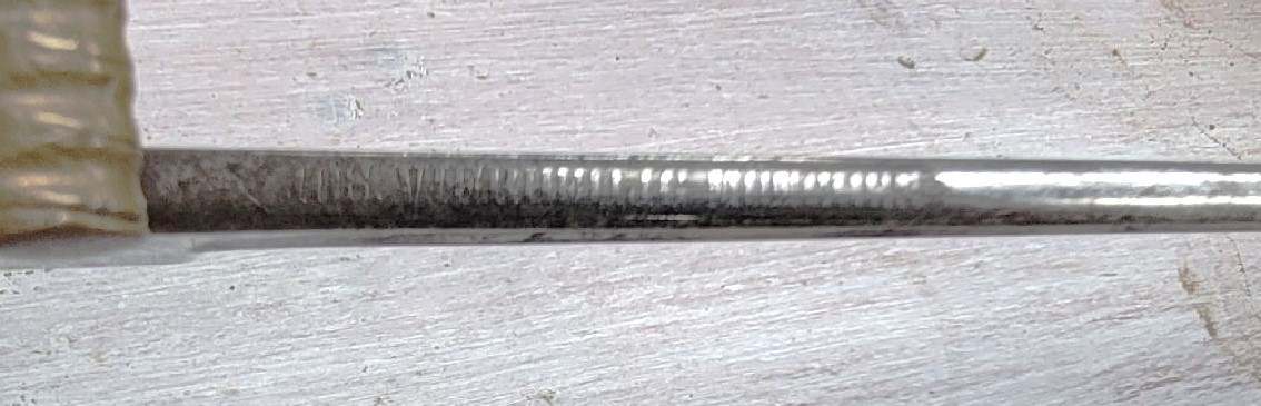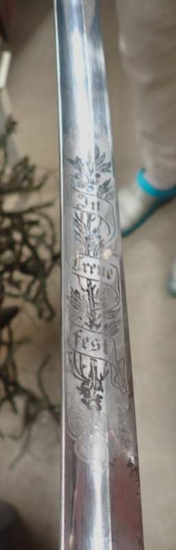 SARGE Posted December 4, 2023 #2 Posted December 4, 2023 The etched name on the spine of the blade is the Munich retailer (Distributor) of the sword. The etched motto is the Bavarian motto and is standard for these swords. It seems this sword was made by WKC in Solingen if I am seeing a knight's helmet marking on the blade. I would say this sword is in the $200. price range. I hope this is helpful.