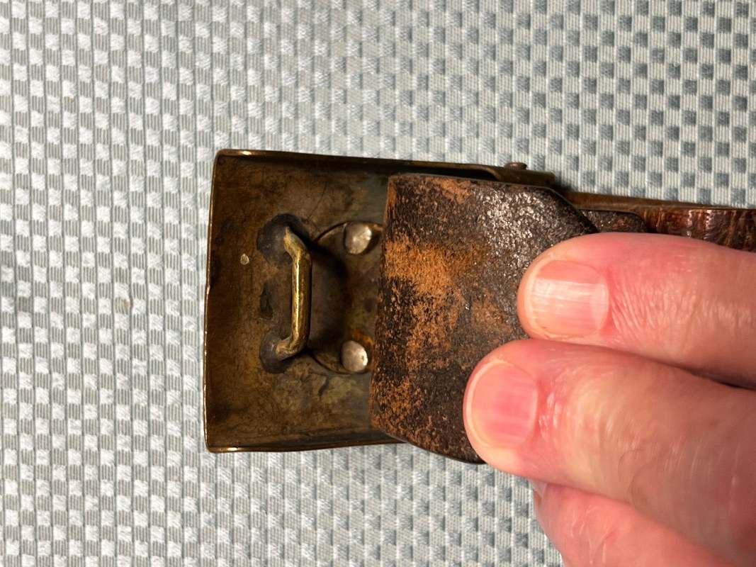 Marine1058 Posted April 30, 2024 Author #4 Posted April 30, 2024 Here are some better pictures I just took of the buckle and belt. There is a faded boxed stamp on the belt in the last picture.