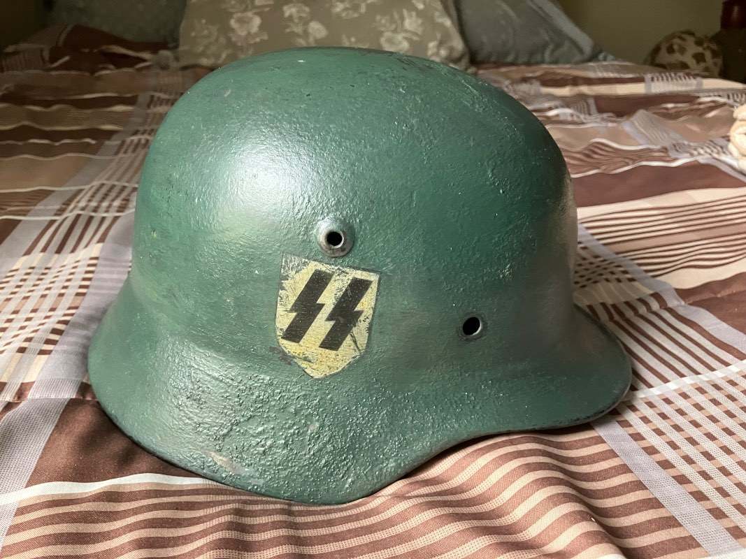 Gunner87 Posted June 13, 2024 #2 Posted June 13, 2024 1 hour ago, mnpacker1 said: Bought this German helmet in a South Dakota antique store. Someone painted it a wrong color and I am almost 100% sure the SS decal is fake. It is an original German helmet with marking HKP60. Should I strip the paint off and repaint with correct color? Hi mnpacker1 Welcome to the forum. According to the German Helmet Vault your manufacturer is 'Sächsische Emaillier und Stanzwerke' and hkp60 was a M40 'Heer' helmet so the decal is wrong. Great site https://germanhelmetvault.com and the owner can be contacted for advice which I'm sure he could offer regarding the paint work. Gunner