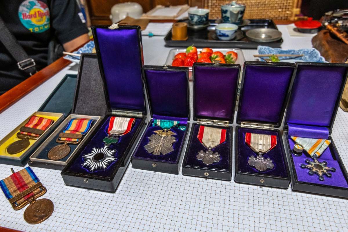abufletcher Posted June 18, 2024 Author #2 Posted June 18, 2024 One of the joys of living in Japan (for the 26 years I lived here before retiring to California last year) was to be able to have personal contact with the shop owners. It meant that every purchase came with a treasured memory. This is the shop in Kochi where I bought the Golden Kite 5th class...and also the officer's uniform on a subsequent visit. The older gentleman who owns the shop also had a Golden Kite 4th class, but that was way out of my price range. My son goofing around in another shop while I ask for a discount (you never actually "haggle" in Japan). You just ask for a "warabiki" My son keeping up the conversation with the owner of a small shop in Kanonji, who offered us strawberries and manju while I looked over the decorations he pulled out after I expressed an interest in them. The owner wasn't himself at all interested in the decorations and seemed to be surprised that I was. He only got these out when I said that I was interested in the Taisho era and into the 30s. He seemed to want to get rid of them all in one sale and quoted me 50,000 yen. I already had many of them so we agreed on a few for a lower price. This is where I got the Golden Kite 7th class. My daughter was with me on another visit to the antique shops in Kochi.