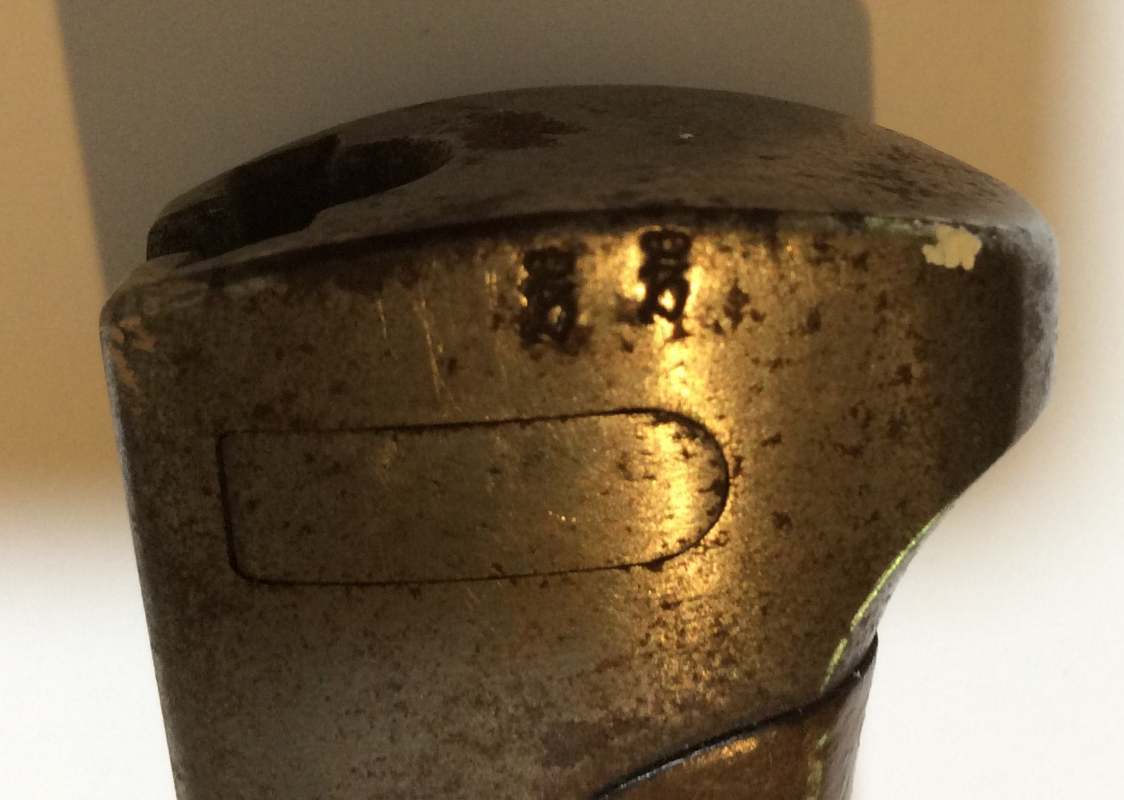 JeanH Posted May 23, 2025 Author #3 Posted May 23, 2025 8 hours ago, Richie B said: German S [Seitengewehr] 98. Made in 1907. I suspect the C in C G Haenel has worn off over the years. The small stamps are inspection marks - a Crown over a Fraktur character. Thanks! I was a little skeptical, but dug out my extra strong mag glass and sure enough - it's faint, but (knowing what to look for) you can see the bottom curve of a 'C' and a faint '.' (period) Took another pic in better light, and captured the 'C' and you can also see sort of a "scrape" - although can't really see anything on the scabbard opening that would have worn off the 'C' but left the 'G' in such good shape. Thanks again! Jean