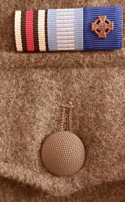 S.ChrisKelly Posted June 24, 2025 #1 Posted June 24, 2025 All reproductions. The collar patches came "raw/unformed", so I hand-formed and hand-stitched them on. The device on the ribbon bar is original, and most of its silver plating is worn off. I hand-constructed the ribbon bar, and the ribbons themselves are reproductions, as is the pin-back bar on which they're mounted (no gaps between the individual ribbons!).