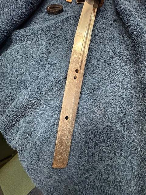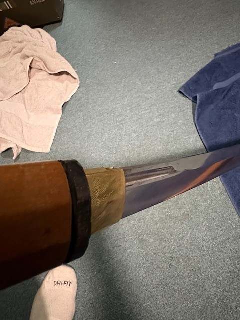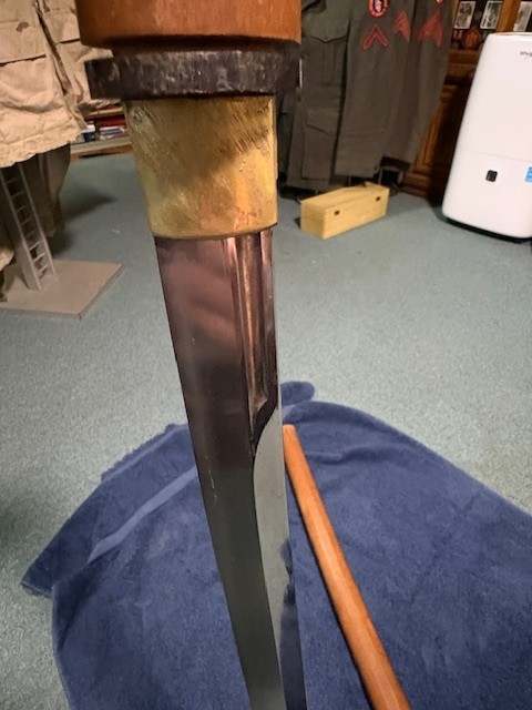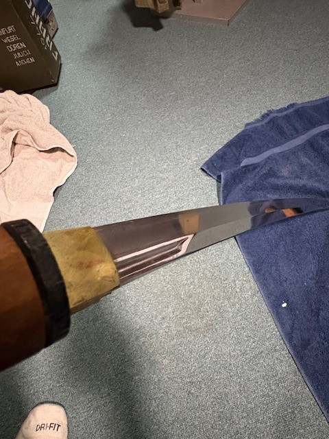 BrianD Posted October 27, 2025 #1 Posted October 27, 2025 Hey all. Not my usual forum to post on but here I am! I come to you all with my literal "hat in my hand" in hopes that someone can help me with this katana I just bought. This sword was a bring back, along with a Type 2 Arisaka para rifle (I now own also), and was hoping that some of you out there with knowledge that I clearly don't have could help me identify and authenticate that what I have is what I was told. Now, I will say that the vets son (himself a Vietnam vet), did talk back in the 80's with a supposed renowned Japanese sword guy in IL named David Pepin. They were told that this sword dates from the late 1300's and is a copy of a famous maker of the time (I have no idea!). He said that this was a very old sword that was cut down at some point from a full sized katana. I will post a bunch of pictures in hope of someone being able to tell me a few things about it. Is it authentic? Is it old? Is it valuable (I already paid so I suppose that it doesn't really matter), and what you think about it. Here are a lot of pictures for you to look at and give me your thoughts on this bring back. Thank you all in advance, as I truly have no idea on these weapons as I am not a Japanese collector. Thanks! more. Pictures of the tang and makers marks...... More tang pics