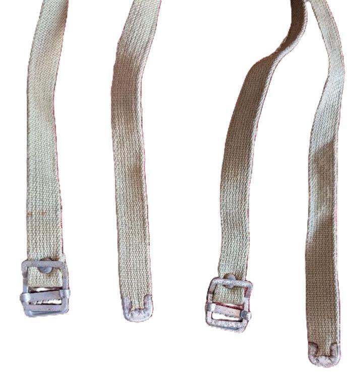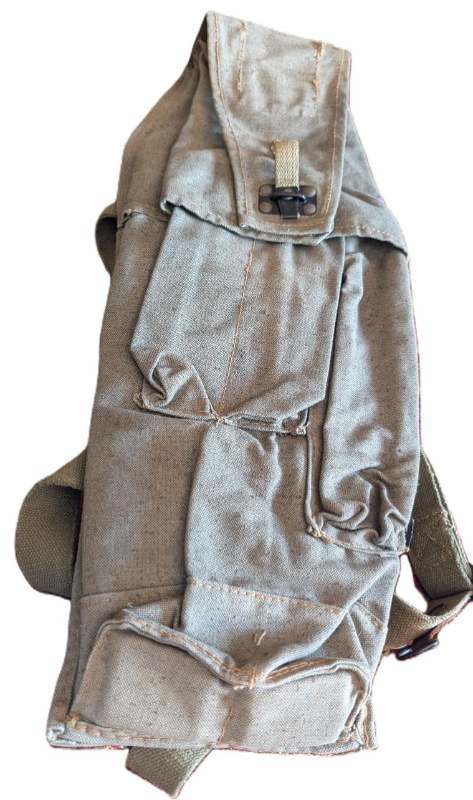 PigeonP Posted February 11 #1 Posted February 11 The first pics are of canvas pieces with metal oval slots three on each piece, which looks like it should attach to a backpack or pack board, as it has an opening that looks like it should be attached to something. The second pics look like a carrying strap, it has a metal handle? Maybe to carry a box or sleeping bag? Not sure what country. The third pics I was told was a Double RPG Rocket Bag, does this look authentic it has a orangish threading on it. If it is can someone tell me what country this is from? Maybe Russain or Polish? Also Era of the item. If someone can help me identify these items, I would greatly appreciate it. Thanks I have many more items I will need help with in the future, as I have just received boxes of vintage Military items I'm just starting to go through. Thanks Again