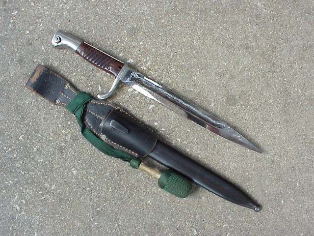 SARGE Posted February 24 #9 Posted February 24 These "Extraseitengewehr" were private purchase items of extra quality and not generally items of issue. It is not uncommon that the press button in the pommel does not function as they do not ordinarily actually attach to the rifle. Often the slot in the Pommel has a colored felt plug. These private purchase bayonets were marketed as short KS98 for NCOs and longer KS98 for EM. Mostly a marketing strategy by Eickhorn and other makers. Here is an example of an interesting Extraseitengewehr made as a modified S84/98 bayonet for an Enlisted Man. This bayonet has an extended guard (like on your KS98), ribbed plastic grips, a flash guard, and a longer blade. Notice the proper S84/98 frog and the Regimental Staff Portepee {Stabe I).